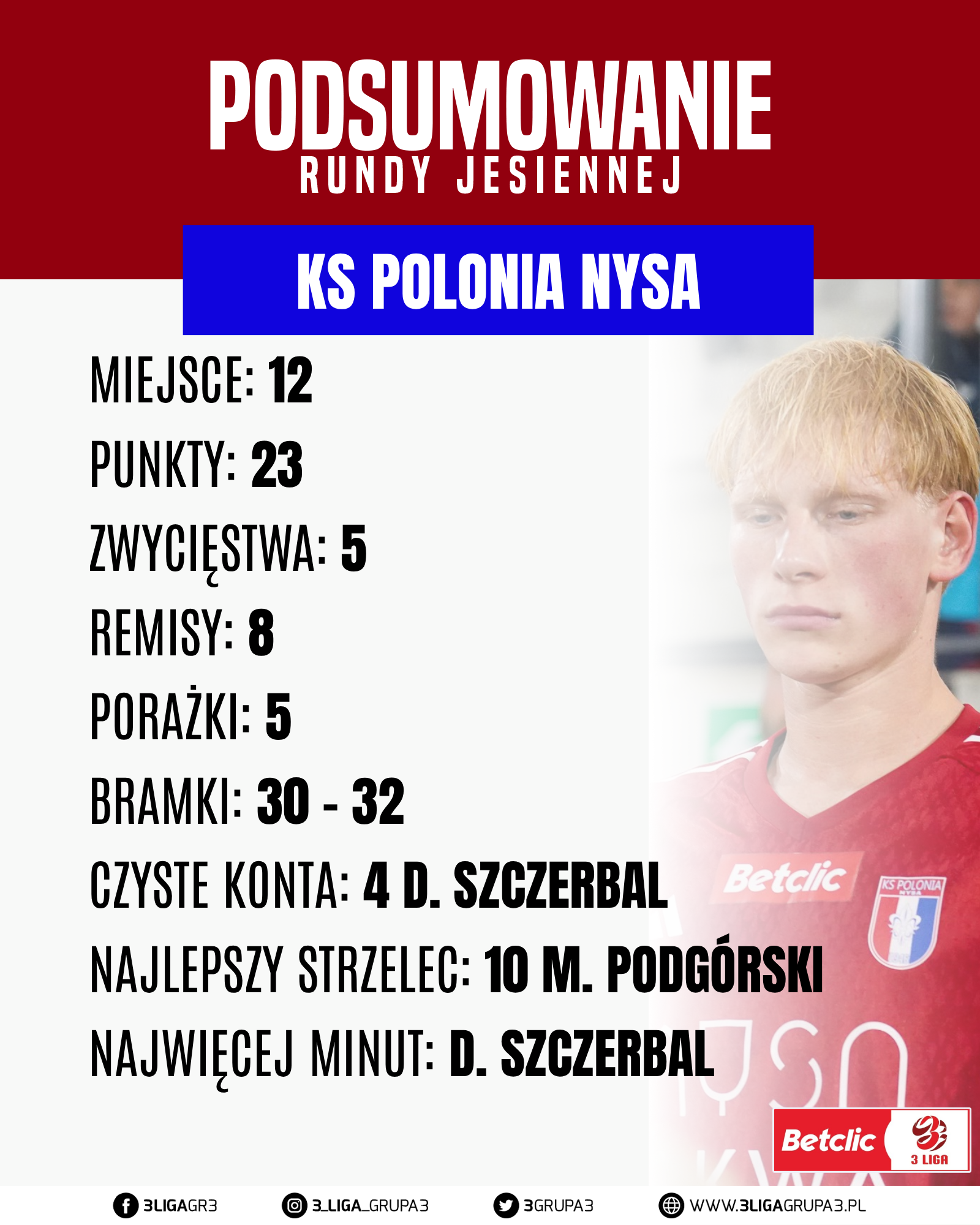 1 gol: Michał Pojasek Błażej Klimek [C] Michał Bednarski Mateusz Baszak
