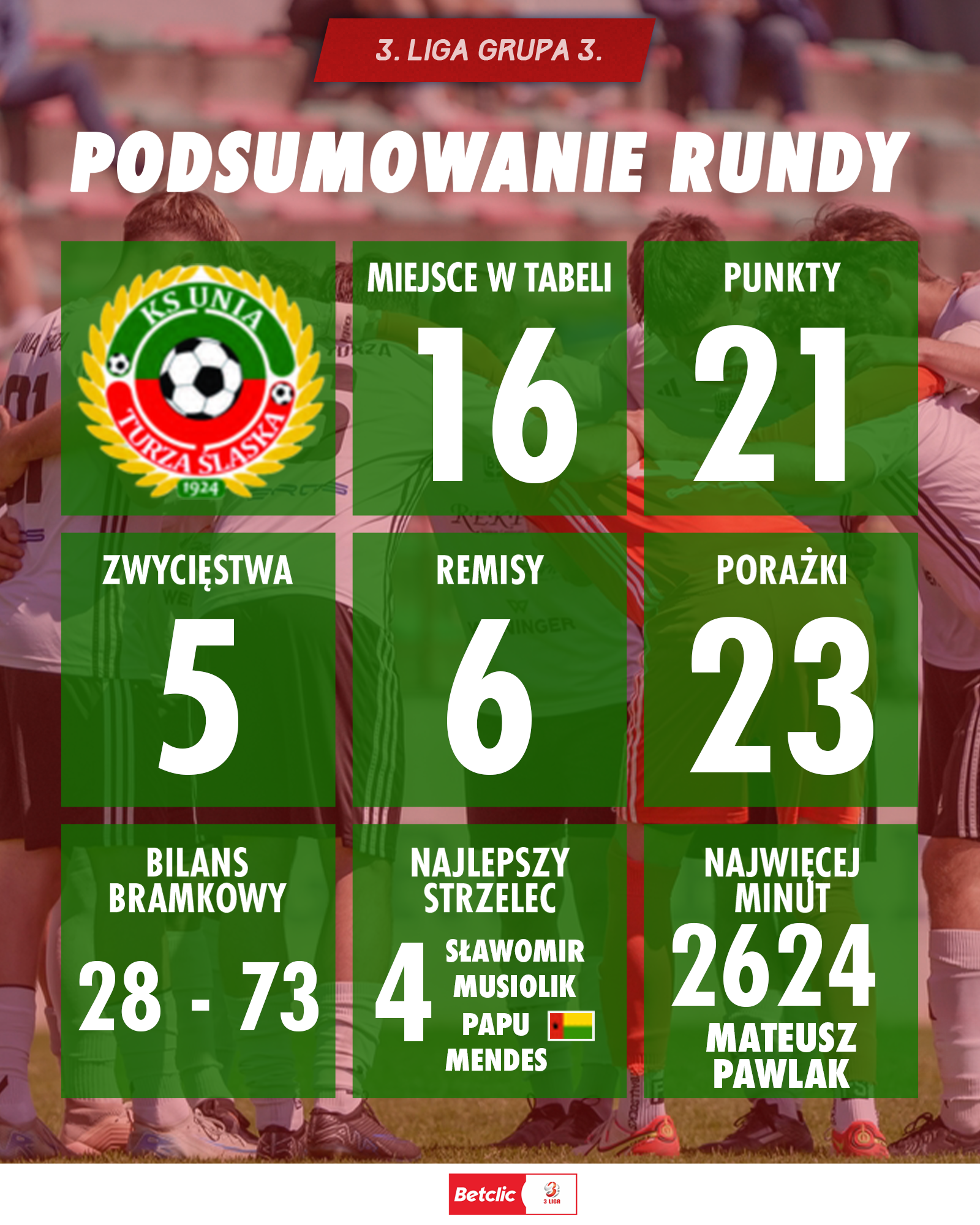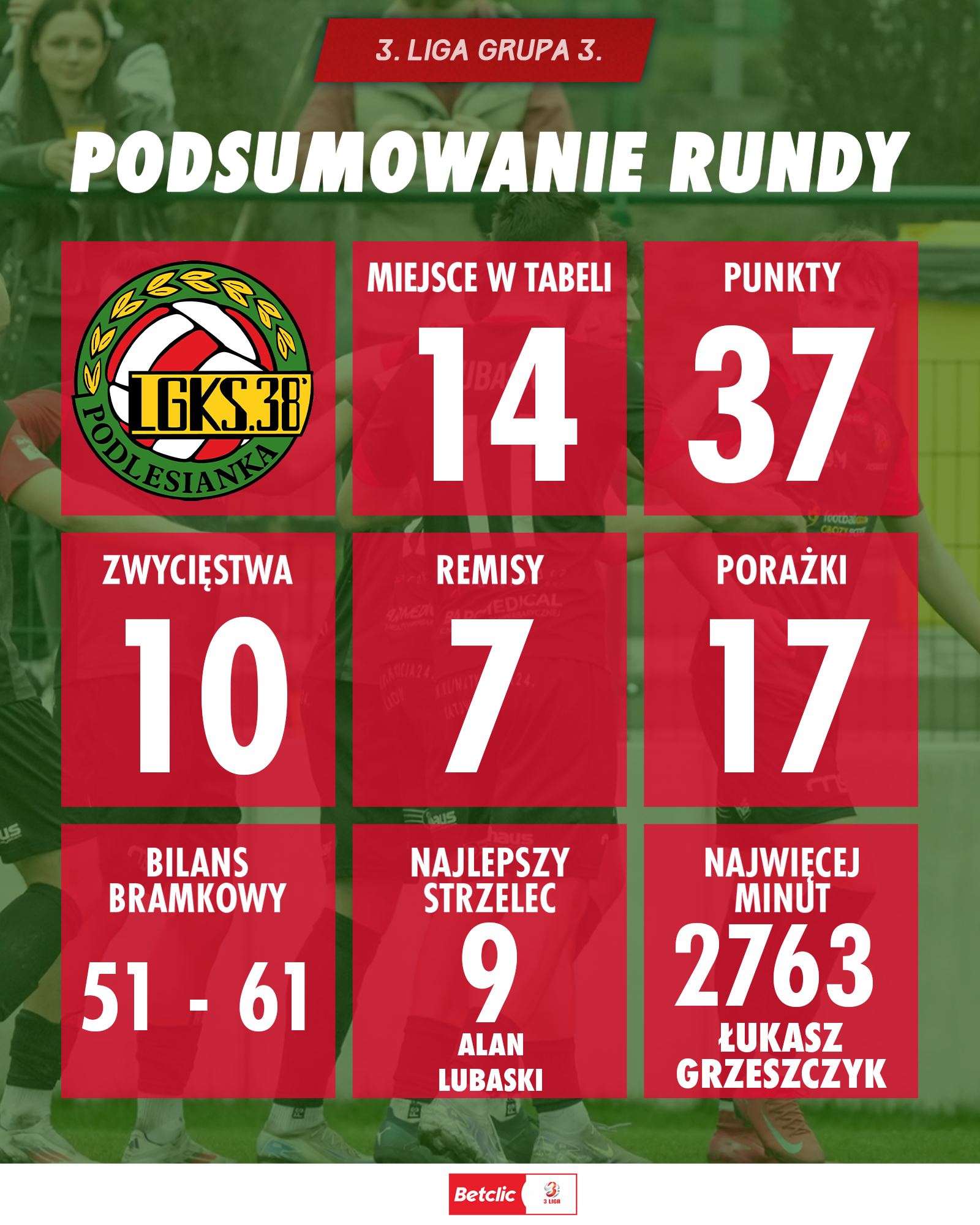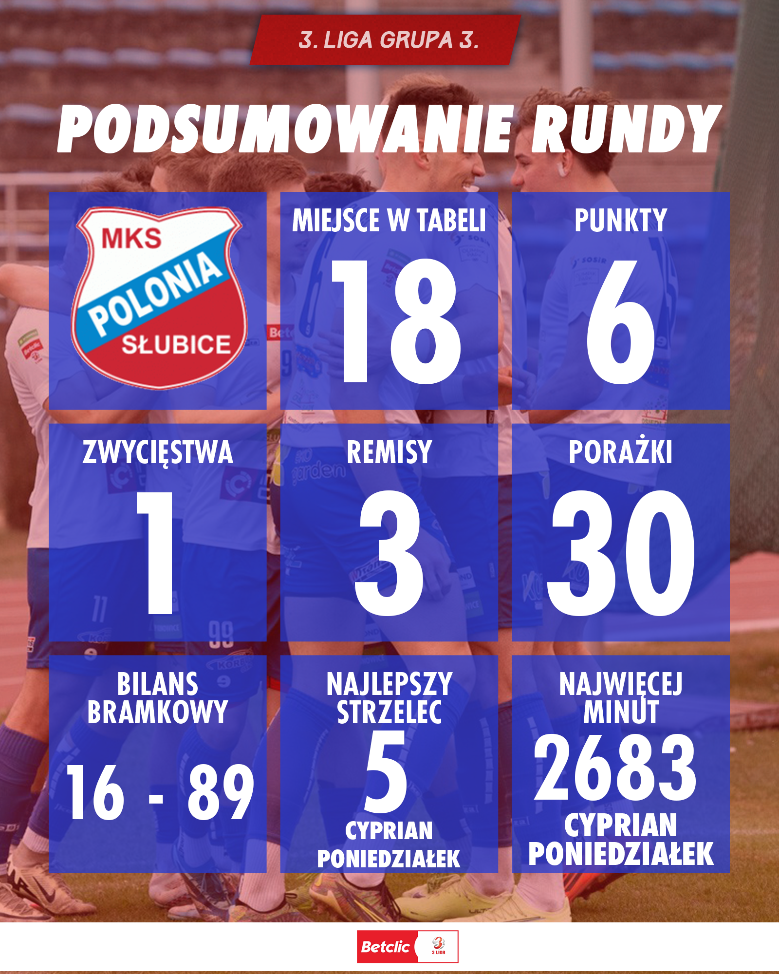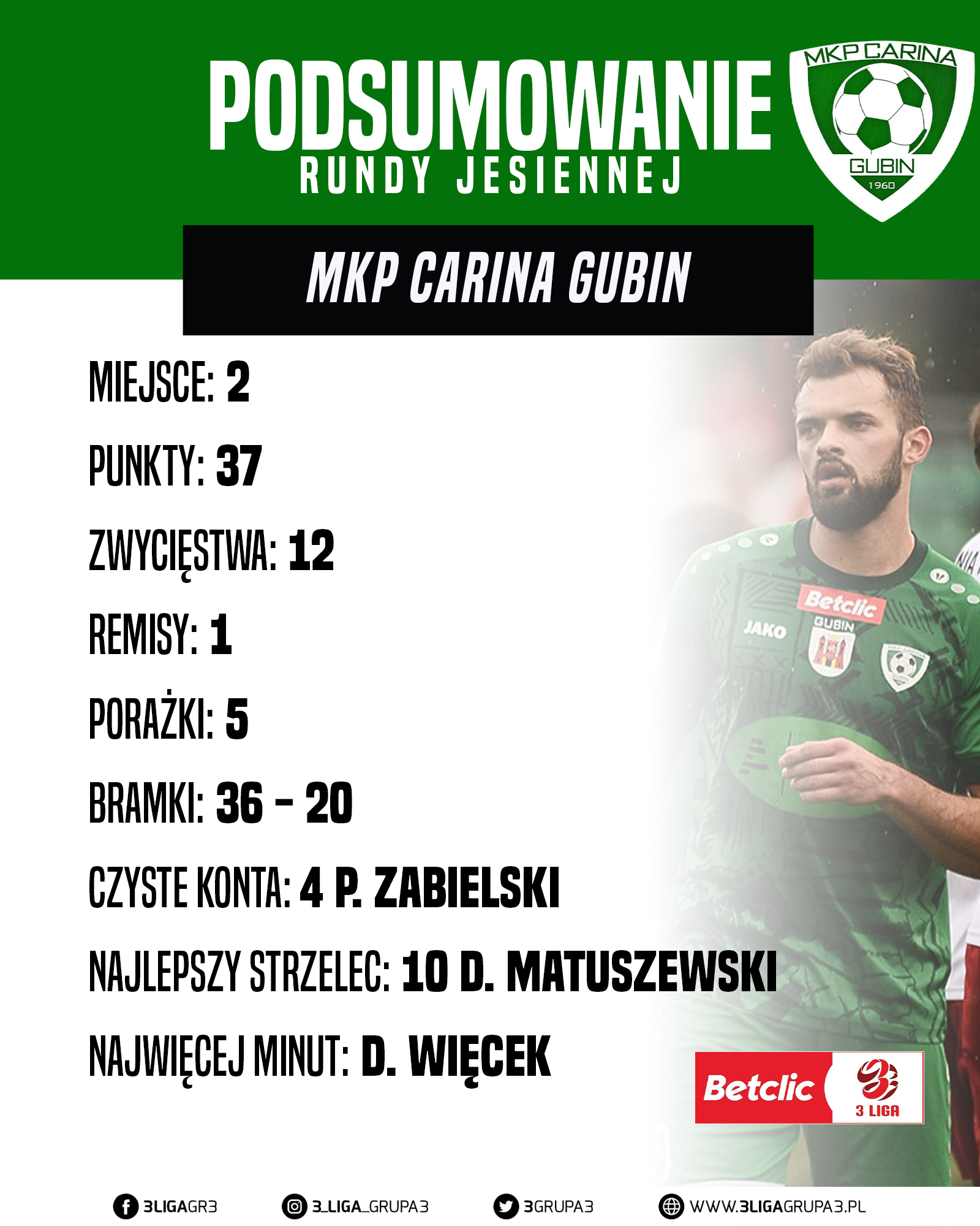 Sezon 2024/25r. zakończony więc pora na podsumowanie sezonu w Betclic 3 liga grupa 3 13 miejsce zajął zespół CFB Stilon Gorzów z dorobkiem 45 punktów punktów odnieśli 13 zwycięstw, zaliczyli 6 remisów i przegrali 15 spotkań ich bilans bramkowy to 42 – 44. Drużyna z Gorzowa miała nadzieję że się utrzymają ale niestety w 2 ligi spadły dwa zespoły i taki los że musieli się po 3 sezonach muszą opuścić szeregi 3 – ligowe. Widać że poziom 3 ligowy jest coraz trudniejszy, liga idzie do przodu jeżeli chodzi o poziom. W tej drużynie wystąpiło sporo doświadczonych zawodników takich jak Adrian Łuszkiewicz, Mateusz Mączyński, Emil Drozdowicz czy Olaf Nowak. W tej drużynie podczas całego sezonu doszło 1 raz do zmiany trenera. W tej drużynie występował w rundzie jesiennej 4 zawodników z zagranicy. O to nasze krótkie podsumowanie po rundzie jesiennej