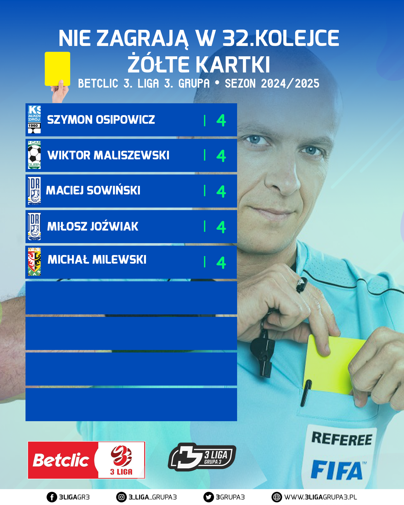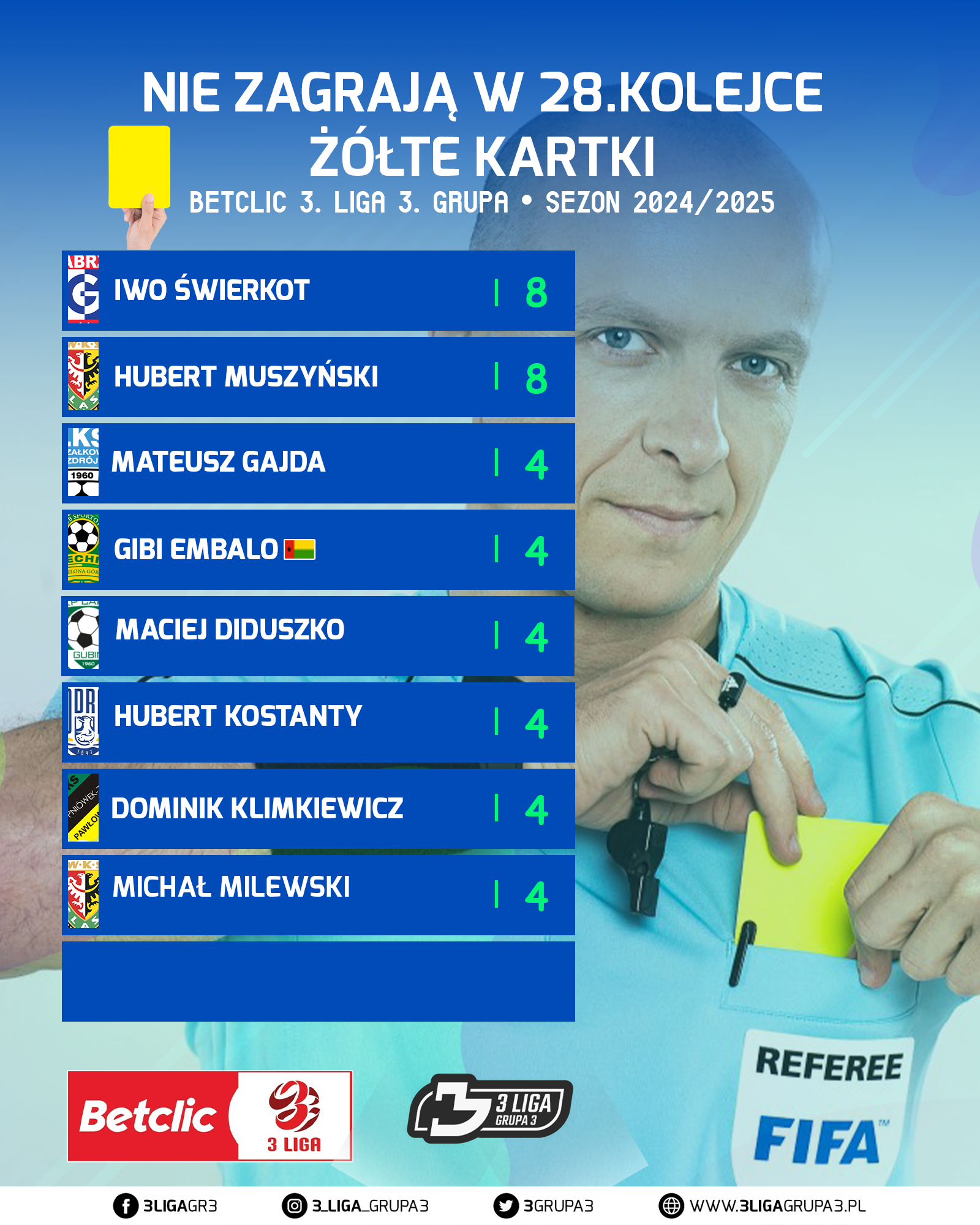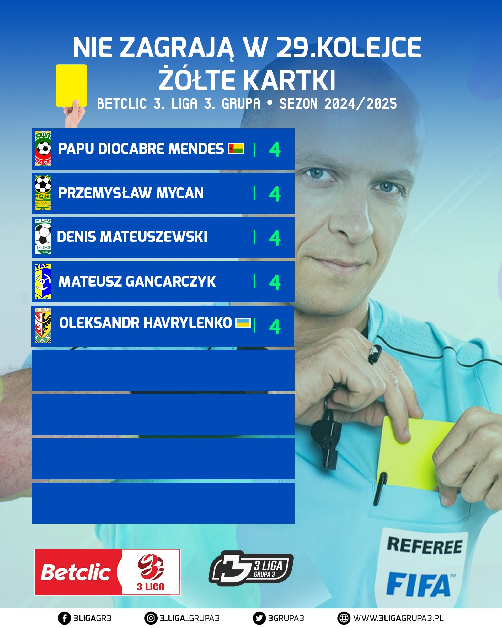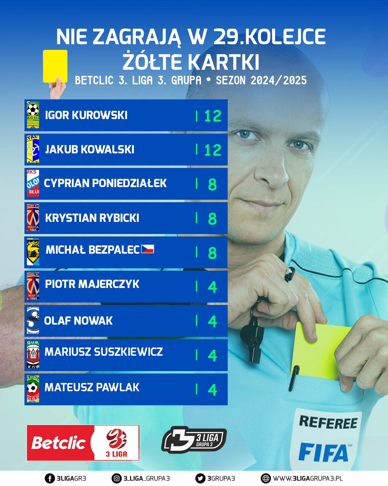 RAPORT KARTOWY POSZCZEGÓLNYCH GRACZY Z BETCLIC 3 LIGA GRUPA 3