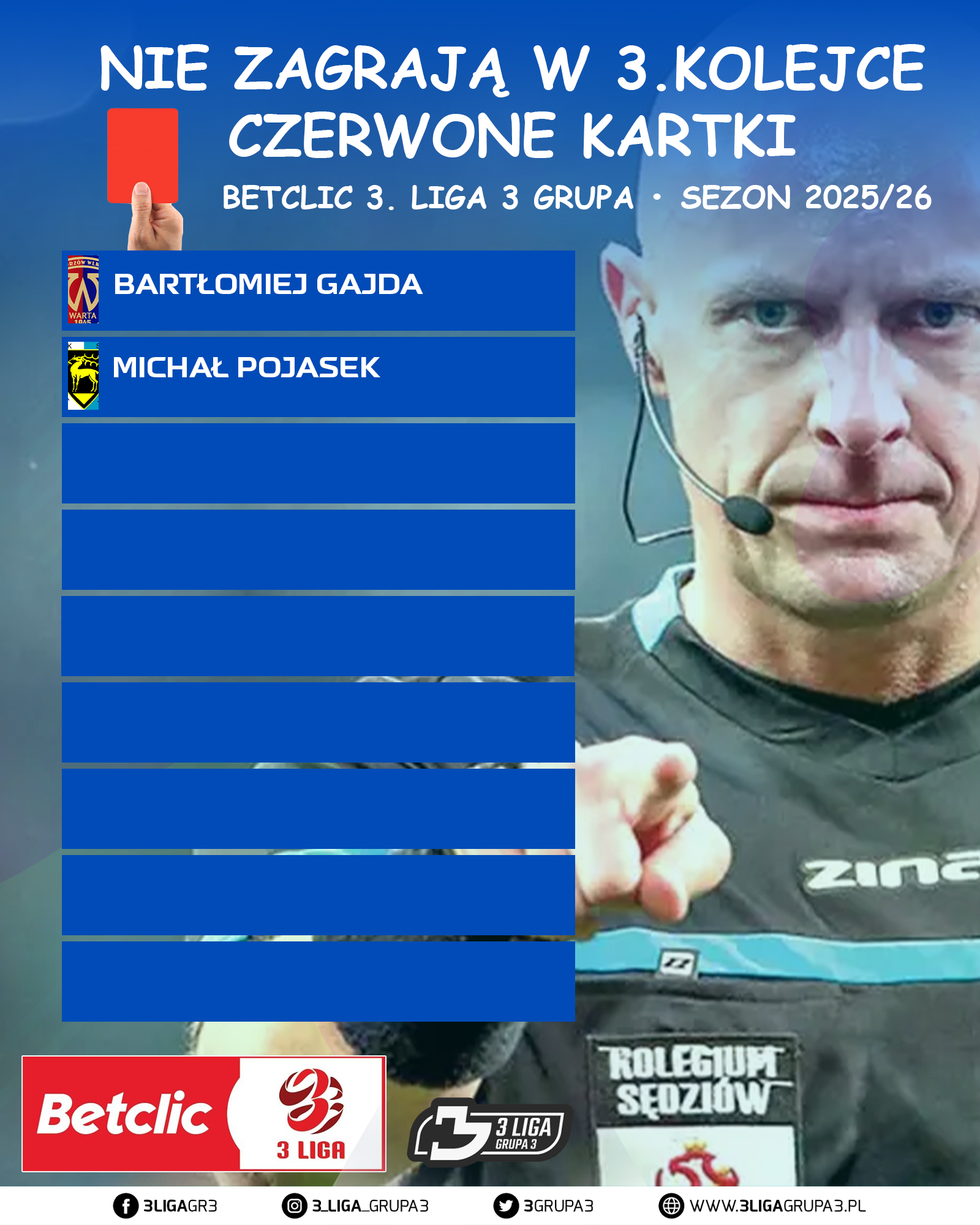 W następnej 3 kolejce która zostanie rozegrana 22 – 24.08.2025r. Piątek – Niedziela nikt nie będzie pauzował.