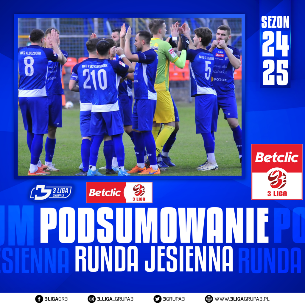Po pierwszej rundzie miejsce 4 zajmuje zespół MKS Kluczbork z dorobkiem 32 punktów odnieśli 9 zwycięstw, zaliczyli 5 remisów i przegrali 4 spotkania ich bilans bramkowy to 32 – 18. W trakcie tej rundy mieli lepsze lepsze i gorsze mecze, w ich kadrze znajduje się sporo ciekawych piłkarzy, młodych, oraz doświadczonych. To kolejny zespół który występował w rozgrywkach Pucharu Polski w fazie 1/64 finału pokonali 3 – ligową Unia Swarzędz 2:1 natomiast w 1/32 finału przegrali z 1 ligowym ŁKS- em Łódź W tej drużynie występowało w rundzie jesiennej 1 zawodnik z zagranicy. O to nasze krótkie podsumowanie po rundzie jesiennej (jeden mecz został rozegrany awansem z rundy wiosennej)